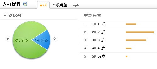 對于應(yīng)用人群的一致我們還可以百度搜索指數(shù)的統(tǒng)計(jì)數(shù)據(jù)看出,20-29和30-39歲是MP3和MID平板共同的關(guān)注人群,而相對于MP4來說MID平板的關(guān)注人群更多,MP4關(guān)注人群年齡更低。但是考慮到這些關(guān)注MID平板電腦的人群,其中30-39歲消費(fèi)群體,有很大一部分對應(yīng)的是類似iPad,樂Pad以及XOOM能數(shù)千元的高端產(chǎn)品。因此如果細(xì)化到千元以下的MID平板關(guān)注人群,其和MP4關(guān)注人群更加切合。