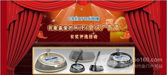 | 前言: 為進一步推進CREATOR快捷WiFi會議產(chǎn)品的知名度,強化公司高端形象,在行業(yè)內(nèi)掀起一場無線會議的創(chuàng)新和革命,CREATOR快捷啟動了“我最喜愛的WiFi會議廣告語評選活動”,歡迎您投出寶貴的一票,如果您有更好的創(chuàng)意,我們愿意聆聽您的寶貴意見,感謝您對此次活動大力支持! |