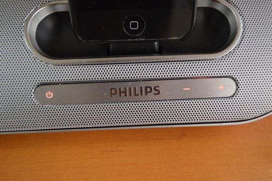 按鍵方面,飛利浦DS6100采用了精簡的設計風格,在Dock接口下方有一個經過金屬拉絲工藝處理的按鈕,包括有電源開關以及音量調節的功能,聯通電源后,按鍵鏤空處會發出紅色亮光。DS6100不提供曲目調整以及播放暫停的功能,但是作為一款蘋果專用音箱,這也秉承了喬布斯對產品按鍵的精簡設計。然而從實際操作考慮,也希望飛利浦能夠在接下來的蘋果音箱產品中加入長短按來實現曲目調整和音量調整的操作。
