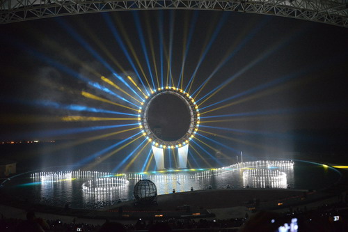 集旅游和演出功能一體的河南開封“銀基O秀”,10月1日由“鳥叔”領(lǐng)銜舉行了盛大的開幕演出,標(biāo)志創(chuàng)下多項(xiàng)紀(jì)錄的全球最大“O秀”正式起航。“銀基O秀”集合了音樂,視頻,水幕,噴泉,噴霧,燈光,激光和焰火等高科技藝術(shù)表現(xiàn)形式,采用大量先進(jìn)技術(shù)和世界頂級(jí)設(shè)備。“銀基O秀”擴(kuò)聲系統(tǒng)選用了西班牙D.A.S.揚(yáng)聲器系統(tǒng)。