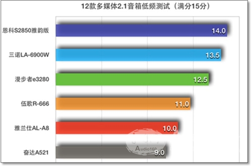 2013年中關村在線2.1音箱橫評——恩科S2850雅韻版低音表現位列第一名