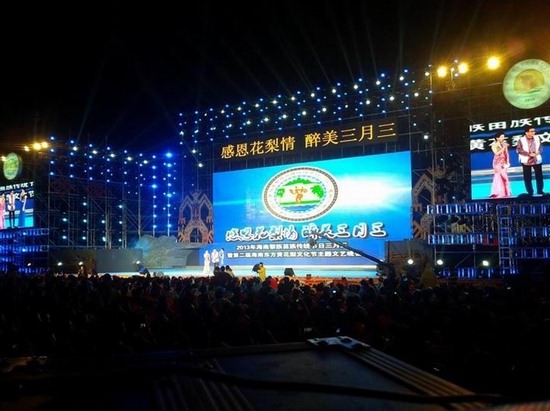 2013年4月11日,海南省東方市三月三文化生態公園人頭攢動、鑼鼓喧鳴,海南黎族苗族傳統節日“三月三”暨第二屆海南東方黃花梨文化節盛大開幕,3萬多市民游客齊聚,共享狂歡之夜。