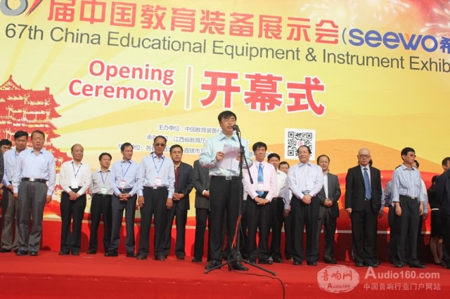 中國教育教育裝備行業協會會長、教育部關心下一代工作委員會常務副主任王富在接下來的講話表示,中國教育裝備展示會已經成功的舉辦了66屆,它是一個專業的展示會,也是一個大型的、綜合性的展示會,同時又是一個品牌展示會,因為連續兩屆被授予“金手指”獎;展示會的目的是加強教育裝備行業的交流,展會教育裝備的新成果,提高教育裝備的信息化和現代化的水平,推動我們教育裝備的發展,