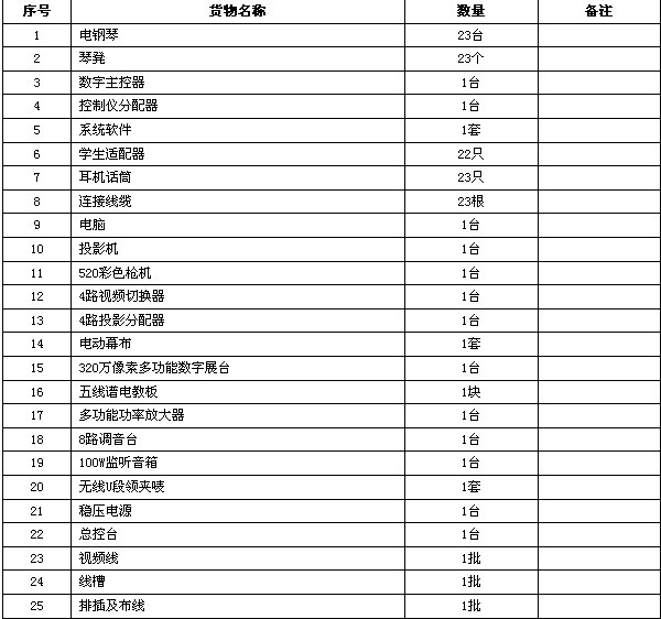 項目C 師范部音樂教學訓練中心設備貨物需求一覽表