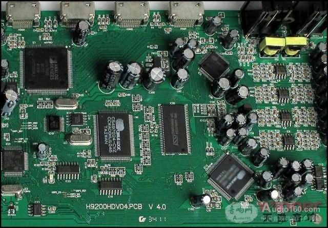 圖五:這是AD-9215HD的解碼電路電路板,從該電路板的工藝和印版布局來看,的確有令人賞心悅目的大廠風范:微型自動貼片工藝技術生產,這種自動貼片工藝技術所生產的電路板有著極高的規范性和可靠性,極大的杜絕了虛焊、漏焊。使電路板和電腦主板一樣的可靠耐用,故障率非常之低......
