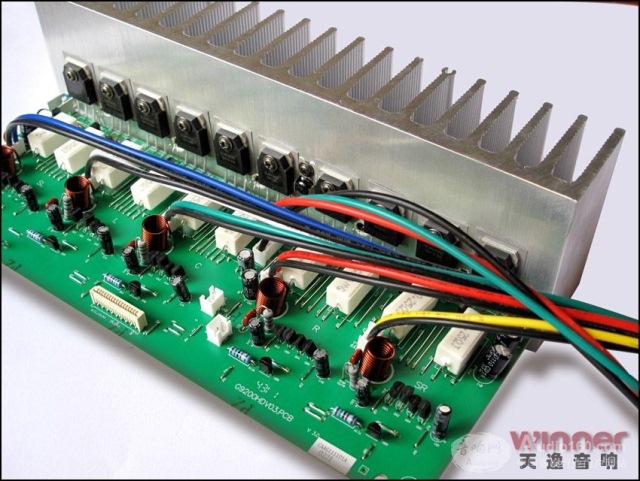 AD-9215HD的模擬音頻功放電路部分,一直是天逸音響的技術強項,天逸在我國的高保真音響制造業中已有20余年的悠久歷史了,對傳統的高保真HI-FI功放電路的設計生產更是久負盛名,為業界所矚目!筆者注意到:AD-9215HD的每一個聲道都是采用獨立的HI-FI電路印制板,并大量采用了科技含量高、可靠性極佳的智能微型自動貼片工藝技術生產,這種全自動電腦程序化貼片工藝技術有很高的焊接精度和一致性,所生產的電路板有著相當高的可靠性,焊點漂亮,極大的杜絕了虛焊、漏焊。使電路板和電腦主板一樣的美觀可靠耐用,故障率非常之低。