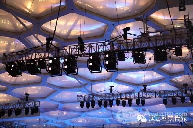 由北京天音彩韻演出器材有限公司負責音響系統的搭建、設備提供以及系統保障工作。音響系統選用了2張Soundcraft Vi6調音臺同時工作,互為主備關系,可以實現無縫切換,確保作為控制核心的萬無一失;擴聲系統選用了JBL品牌VTX-V20線性陣列揚聲器和VTX-F系列揚聲器以及CROWN IT-HD系列數字功率放大器;表演話筒采用SHURE公司Axient數字雙頻率無線系統;值得一提的是,此次演出最大規模地使用了BSS傳輸處理器來實現主/備的自動無縫切換,確保信號傳輸的安全可靠。據音響設計馬昕介紹,由于國家游泳中心(水立方)場地的特殊性,演出現場較為空曠,再加上音響設備的安裝布置需要與環境和舞臺美術很好地融合,音響團隊在兼顧聲音的清晰度和現場氣氛方面做了很多調整,力保聲音的高品質以及安全性。