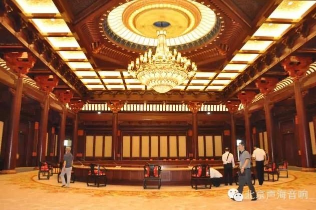 釣魚臺國賓館會場使用了SH306,SH12,SH15音箱,TLA101,TLB218線陣列音箱,PSH500,PSH1000、PSH2000功放,SH206P處理器用于宴會廳擴聲和會見廳擴聲。