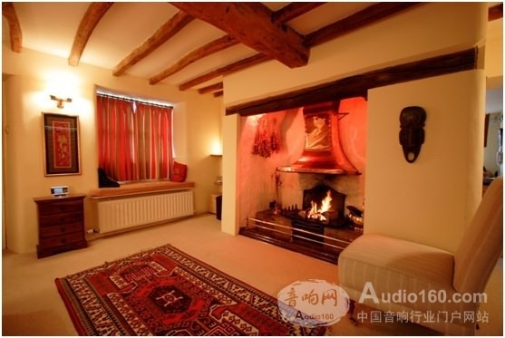 作為歷史建筑的焦點,傳統的壁爐實在難以使音樂響起來。而對于這座350年歷史面包房改建而成的壁爐房來說,偏偏遇上音樂發燒友屋主,這就更頭疼了。