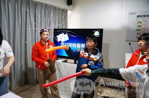 眼前這一幕發生在北京的一家索尼直營店中。今天,索尼在華集團公司“志愿者公益周”項目在全國啟動的日子。一早店里面就迎接來了20位來自北京昌平新源學校的孩子們。他們被邀請來上一堂與平時不一樣的“科學課”。和平時在學校上課不同,今天孩子們沒有課本,取而代之的“教學用品”竟是稀奇古怪的科學試驗道具,有趣的自制玩具材料,甚至有最先進的智能手機、電視、平板電腦……在這里孩子們可以學習到3D成像的原理,用氣球自制氣球火箭,還能用學習靜電魔術,體驗智能手機的虛擬現實技術的夢幻影像。總之,這里就是一個奇妙的科學課堂。