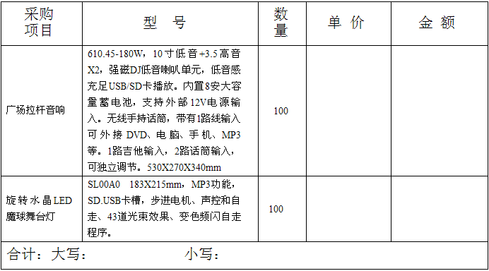 注:1、報(bào)價(jià)為一次性報(bào)價(jià)(注:含運(yùn)送安裝費(fèi)用,交接驗(yàn)收合格價(jià),合計(jì)大小寫(xiě)不得有涂改,否則視為無(wú)效報(bào)價(jià))。2、參標(biāo)商須具備此類設(shè)備經(jīng)銷資格,須提供本單位營(yíng)業(yè)執(zhí)照、稅務(wù)登記證復(fù)印件(加蓋單位公章)。3、須提供法人代表身份證復(fù)印件。4、開(kāi)標(biāo)時(shí)間:2014年4月11日上午10:00點(diǎn)。5、報(bào)名時(shí)間:2014年4月8日至2014年4月10日。6、投標(biāo)人所投報(bào)價(jià)單于2014年4月10日上午9:30點(diǎn)前密封送達(dá)臨潁縣財(cái)政局政府采購(gòu)股,密封處加蓋單位印章。同時(shí)繳納投標(biāo)保證金2000元人民幣現(xiàn)金。7、臨潁縣財(cái)政局政府采購(gòu)股聯(lián)系電話及傳真:0395-5856588