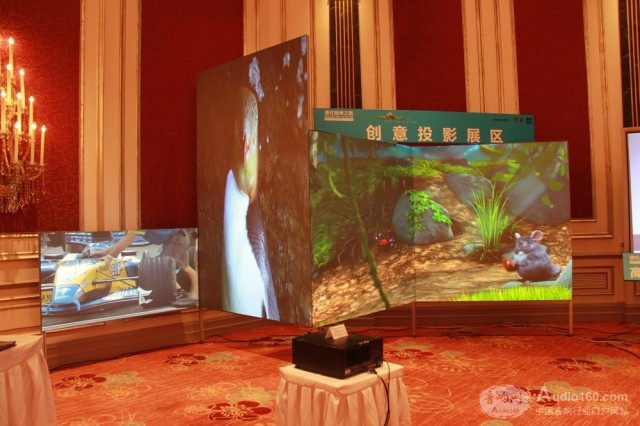 丹麥dnp光學正投屏幕的創意異形拼接;