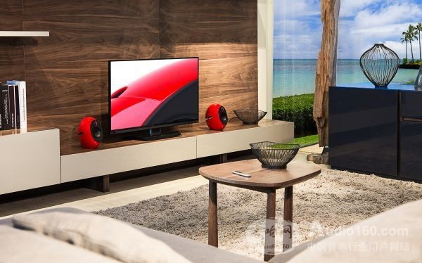 正是瞄準了超薄液晶電視聲音表現力不佳的商機,“電視音響”(又稱“回音壁”和“Soundbar”)作為一個獨立的品類走入了我們的生活。與傳統的5.1甚至7.1聲道的家庭影院級別的音響套裝相比,小巧別致的電視音響不會占用更多空間,滿足20~30平米左右的客廳環境不成問題(圖3);與傳統的2.1聲道數碼音響相比,電視音響則主打更易融入家居環境的外觀設計,或者擺在電視兩側,或則作為電視的底座(圖4),上演一出“聲色兼備”的好戲。因此,挑選電視音響的核心之一就是它符不符合你家裝修的Style(圖5)。