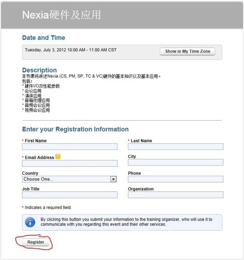 3. 請?zhí)顚懽员砣缦聢D所示。填寫完成后,點擊“Join Training in Progress”