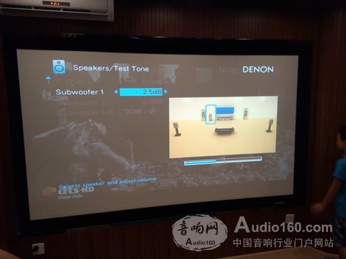 低音炮部分:大家都知道低音炮是相對難調的,我們先按照THX標準把相對調到0,分頻80HZ,音量12點,和相位調到180對著墻面在幕布左右兩個炮位來回做對比,最終定到炮位左邊相位0最佳。