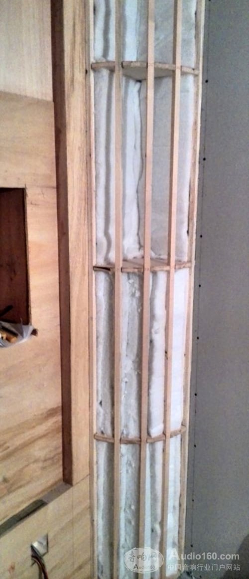 吸音隔音:墻面采用三層復合棉氈14MM+木龍骨+聚酯纖維棉。施工方法:復合棉氈+木龍骨+填充聚酯纖維棉+5厘板打孔+木質吸音板。