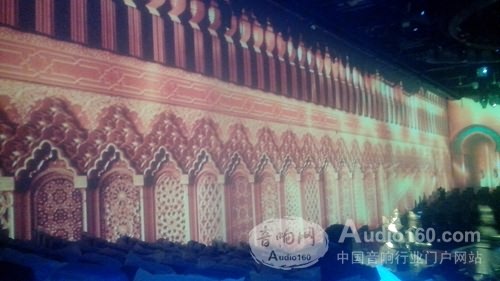 在墻面投影上,Barco則展現出了強大性能,多個場景視頻無縫銜接,流暢清晰。隨著劇情的變換,6K高清畫面將帶領觀眾在沙漠中、宮廷里、星空下不斷穿越,帶來身臨其境般的逼真感,讓觀眾仿佛置身于真正的古代宮廷中,見證這段動人愛情的起源。