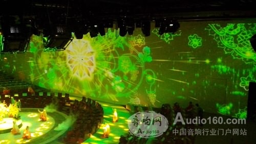 為了實現完美的視頻效果,勵豐文化使用了picturall多媒體服務器與Barco投影機進行視頻處理。Picturall再度展現出了高超的視頻處理能力,通過曲面校正技術,完美解決了中央圓形舞臺的地面投影變形問題,此外,為了提高投影面的亮度,中央舞臺同時使用了4臺投影機,在picturall的精確控制下,4臺投影機的投影畫面達到了完全重合。