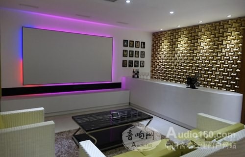 時(shí)尚大氣的客廳影院,如果說(shuō)一樓的設(shè)計(jì)趨于傳統(tǒng)、雅致,二樓的客廳影院和私人影院就更顯時(shí)尚新潮,同時(shí)具有極強(qiáng)的專業(yè)性。由SI窄邊投影幕、KEF吸頂式揚(yáng)聲器、特別定制的ASK高清投影機(jī)及功放系統(tǒng)搭建的客廳影院非常時(shí)尚大氣,特別是窄邊的強(qiáng)光投影幕,外形如大尺寸的平板電視,美觀前衛(wèi)。整套客廳影院加上簡(jiǎn)潔亮眼的吧臺(tái)、幾瓶紅酒、一些飾品,視覺(jué)效果非常贊,令人對(duì)它的影音效果更加期待。