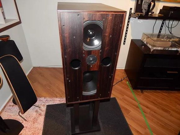 Graham Audio的LS5/5比原來(lái)的BBC版本做了改進(jìn),彌補(bǔ)了早期因?yàn)椴牧霞夹g(shù)上的缺陷,產(chǎn)品比原本設(shè)計(jì)大9dB。看到它的樣子時(shí),我的第一個(gè)念頭是:“有點(diǎn)像Harbeth 40.1”。我的第二個(gè)想法是:“中間的開(kāi)口是怎么回事?” 根據(jù)英國(guó)廣播公司(BBC)的研究:這種開(kāi)口的設(shè)計(jì)可以改善離軸響應(yīng),這是BBC在揚(yáng)聲器的早期的聲學(xué)探索中的一個(gè)發(fā)現(xiàn),這個(gè)簡(jiǎn)單的設(shè)計(jì)可以達(dá)成很好的效果。開(kāi)口的設(shè)計(jì)可以讓聲音更容易以垂直方向分散在房間內(nèi),進(jìn)而生成了較寬的聲場(chǎng)。改善的垂直分散度還使揚(yáng)聲器更易于擺位。LS5/8在最開(kāi)始的設(shè)計(jì)中也有這個(gè)設(shè)計(jì)。后來(lái)在量產(chǎn)中取消掉了。