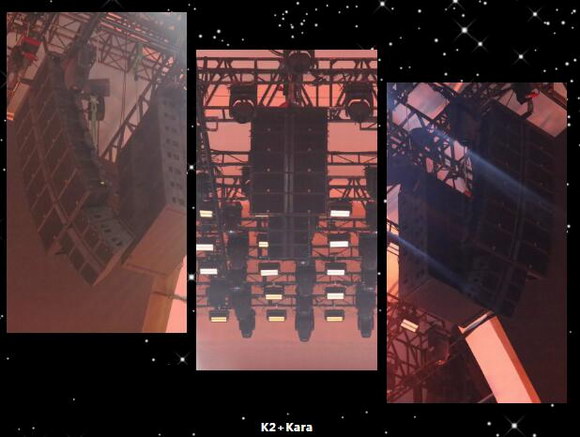 L-Acoustics揚(yáng)聲器和“GLS”一樣奢華而低調(diào),隱藏在樸實(shí)無華的外表之下的K2和Kara,它們高達(dá)147dB和141dB的超大聲壓級(jí)輸出,而更重要的是除了同型號(hào)組成線陣列可以達(dá)到干涉最小的波陣面輸出,保證高品質(zhì)聲音以外。通過組合不同型號(hào),得到了更加精準(zhǔn)覆蓋面和更為一致的聲壓級(jí)分布。通過吳老師及其團(tuán)隊(duì)的調(diào)試,L-Acousitcs的主擴(kuò)系統(tǒng)為各個(gè)區(qū)域的觀眾提供了近乎于完美的聽音體驗(yàn)。