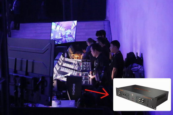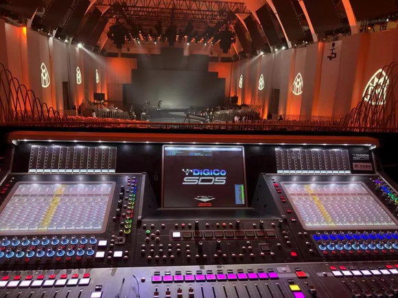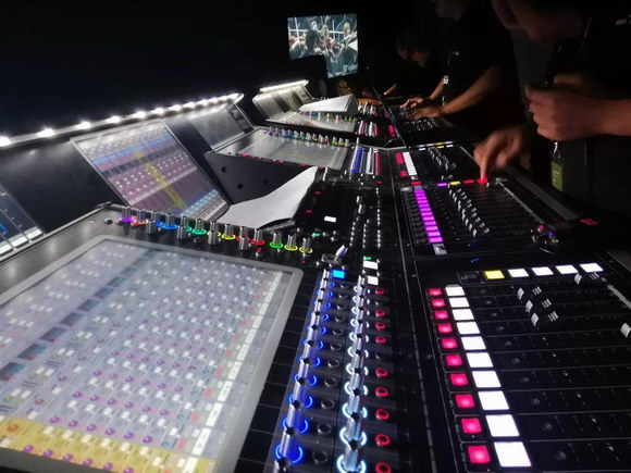 DiGiCo SD5調(diào)音臺(tái)做為主擴(kuò)和監(jiān)聽調(diào)音臺(tái),放置在場地最遠(yuǎn)端的高臺(tái)上,由于位置的原因?qū)τ谙到y(tǒng)的調(diào)試及現(xiàn)場調(diào)音有比較大的難度。