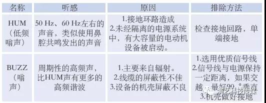 兩種噪聲的區別見表1。有經驗的音頻工程師能夠根據現場揚聲器或者耳機中出現的噪聲判斷問題可能出現在什么環節。