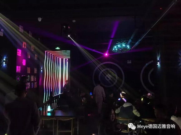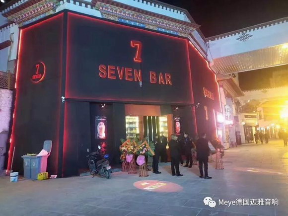 為了讓SEVEN BAR聲音在風情街獨樹一幟。Meye團隊在揚聲器使用和布局經過了細致的研究,酒吧上下兩層分區設置,一層酒吧區放置GL-8線陣作為主場主擴聲器,同時配置雙十八寸B28超低揚聲器,分散布置在酒吧各個方向,帶來了強勁的和震撼效果。另外二樓休閑區采用分散式擴音方式,布置了八只ME-12作為補聲揚聲器,讓二樓消費者聽到真實悅耳的聲音。