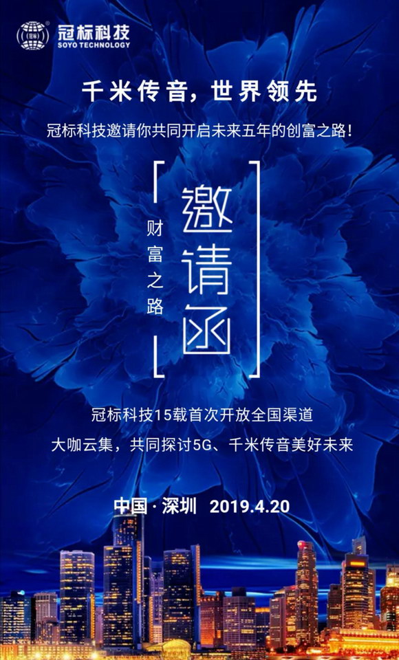 衷心感謝您對我們的關注與支持,深圳市冠標科技發展有限公司定于4月20日在深圳大鵬舉辦全國招商大會,誠摯邀請您的蒞臨!