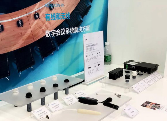 SENNHEISER本次展示了ADN和ADN-W數字手拉手系統和Speechline Wired有線會議話筒。ADN和ADN-W數字手拉手系統擁有優化的語音清晰度和可懂度,主機內置中文操控軟件系統,設置簡便并且穩定可靠,ADN系統主機能夠進行400個會議單元進行控制,其中包括有線,無線,和有線無線混合等三種模式,是數字會議的理想選擇。