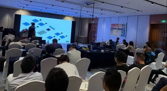 活動現場,SHURE高級工程師通過說明和演示,為現場嘉賓呈現了多種類型的SHURE系統集成會議產品,例如:結合了矩陣話筒技術和IntelliMix DSP MXA910話筒。