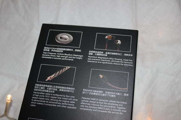 背面T6的特征介紹,12.6mm鈹振膜單元、全鋁鎂合金腔體、四股高純度單晶銅及單晶銅鍍銀混編線材、以及專利MMCX膨脹插針技術(shù)。