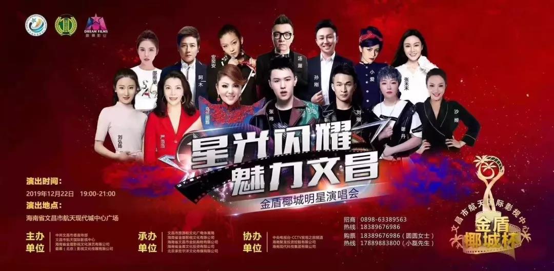 2019年12月22日,華語樂壇知名歌手張瑋、阿木、謝丹、邵雨涵、孫剛、張禾禾、湯潮、小愛、沙婭、安奕安、丁曉紅等集體登陸“星光閃耀,魅力文昌”金盾椰城明星演唱會,為現(xiàn)場1000多名文昌市民聯(lián)袂獻上一場椰城音樂傳奇。