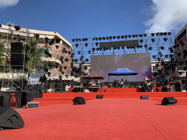 為了給大家留下難以忘懷的演出回憶,音響設(shè)計團隊采用了宏志的揚聲器產(chǎn)品,主擴是大功率的雙十二寸三分頻線陣列音箱。經(jīng)介紹,這款產(chǎn)品具有恒指向特性,具有很好的聲音投射的方向性,在很好滿足全場需要的情況下,大幅度減少非觀眾區(qū)的聲音投射,減少了對周圍居民的干擾。