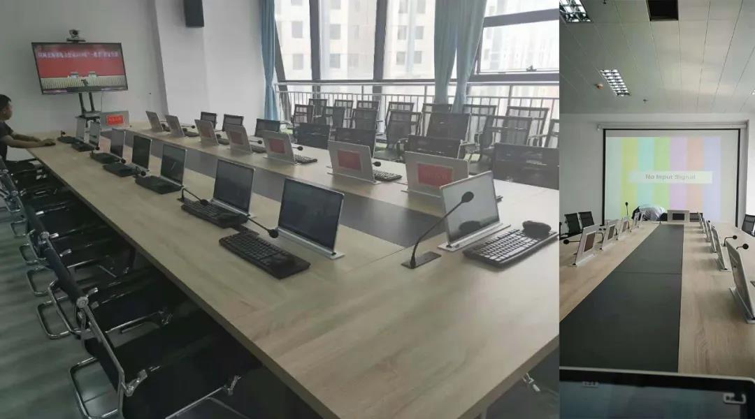 我司泉之韻設計了一套的綠色環保、辦公高效的無紙化配合嵌入式話筒的會議系統解決方案。此會議系統支持任何會議終端一鍵同屏(本地終端通過按鍵一鍵同步畫面到其他會議終端與大屏幕或只同屏到大屏幕顯示);支持異步瀏覽,任何有權限的會議終端支持一鍵切換(本地終端可以通過按鍵一鍵切換遠端同步畫面與本地終端畫面)完成信號的自由交互功能等,方便每位參會者演講時,對辦公文件顯示信號、內部視頻信號以及外部視頻信號的自由切換。