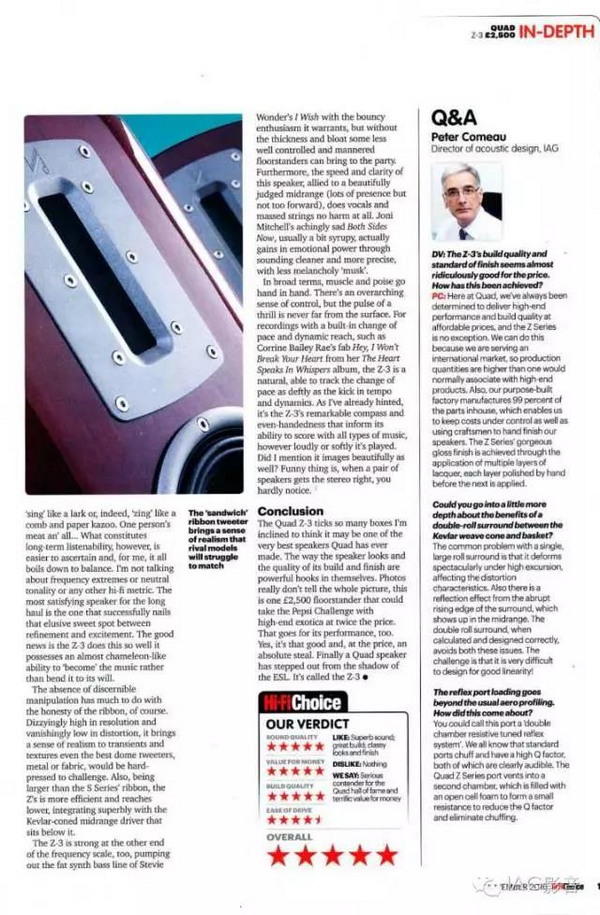 最新一期雜志,對(duì)QUAD(國(guó)都) Z-3音箱做出了五星強(qiáng)烈推薦: