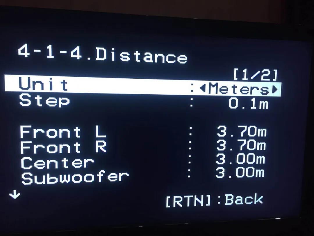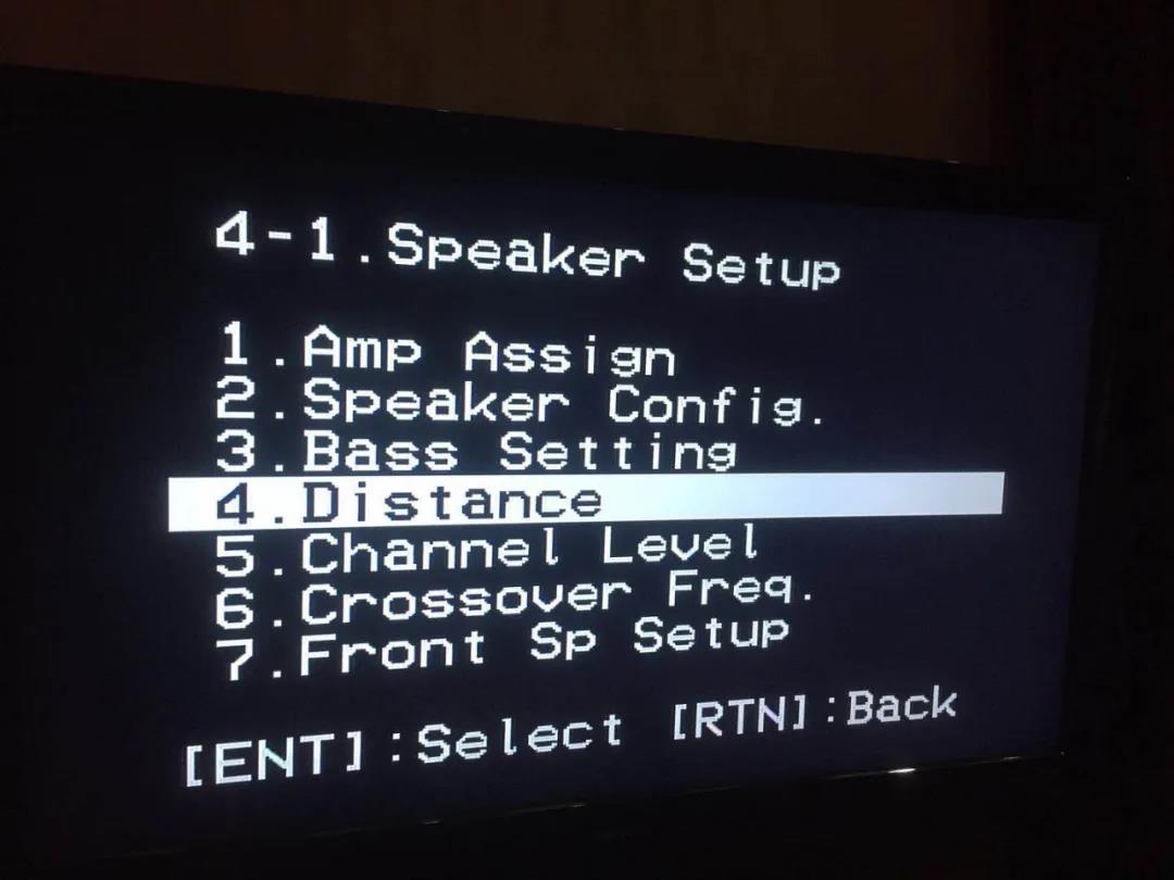 2. 影院安裝定位后, 坐在皇帝位量測每只音箱到你的距離, 進入功放的菜單, 將正確的距離更正在菜單上.