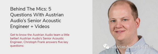 Austrian Audio的OC系列麥克風已經在市場上獲得了業界的一致好評,這次我們請來了研發這款產品的高級音頻工程師Christoph Frank,和我們說說研發背后的故事,了解產品開發的理念。