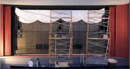 圖片展示的是貝魯特Vox 10銀幕綜合影院安裝的Krix影院揚聲器系統。其中一塊銀幕使用的是最新的杜比全景聲61.3音頻格式。在此格式下,影院的各個位置都會安裝揚聲器,包括后墻和天花板