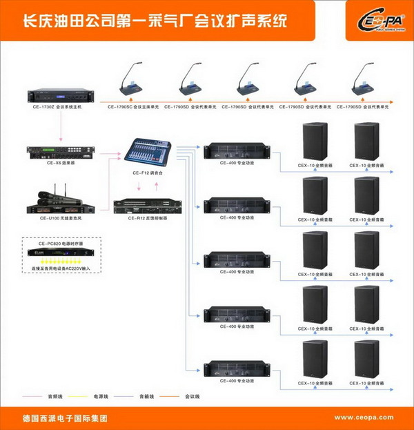 西派CEO-PA會議擴聲系統成功應用于中國石油長慶油田公司第一采氣廠。我們提供售前、售中、售后一站化服務,由技術人員通過現場勘查、客戶溝通,提供前期的建設方案,合理解決會場音箱、設備擺放問題,保障會場擴聲能夠擁有足夠的聲壓級,同時配合現場的美觀布局,設備線路走線。打造一套具有高技術含量、高可靠性的會議擴聲系統!