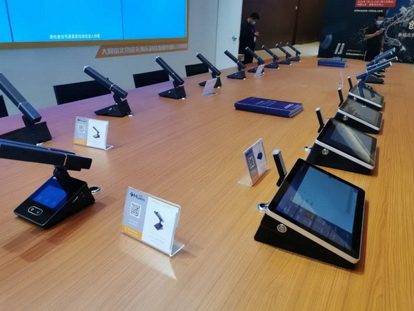 有一款產品有超多客戶和觀展人員鑒賞,試音,它就是雙振膜無紙化會議終端-HY-8500系列