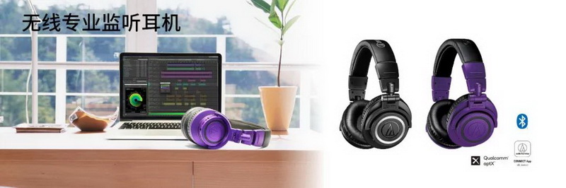 首次在展會亮相的無線藍牙監聽耳機,廣受贊譽的ATH-M50xBT和ATH-M50xBT/PB紫/黑混色限量版,讓您再無拘束的錄音工作。鐵三角專業豐富的產品線可以滿足多類型、多場景的直播需求,定制打造完整的解決方案套裝。