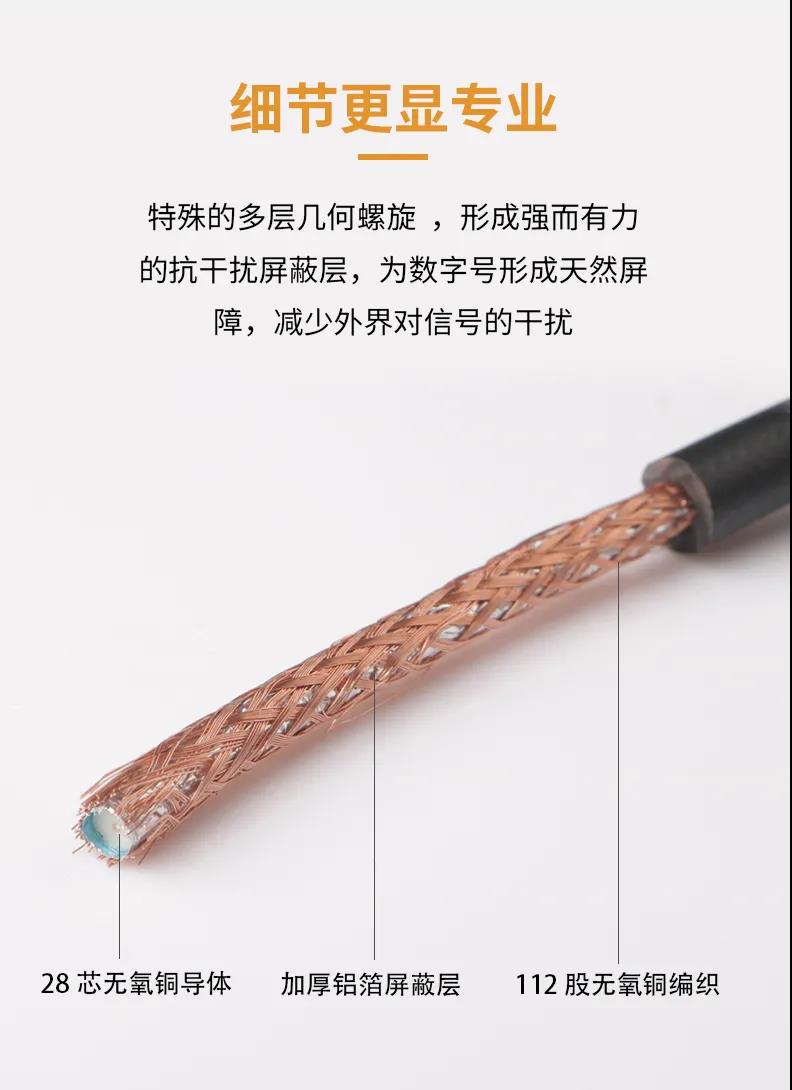 天逸銀環蛇CO-1 Hi-Fi同軸數字信號線,以28芯無氧銅為線芯、加厚鋁箔為屏蔽層,再覆以112股無氧銅編織,能有效消除雜訊,減少信號傳輸過程中的損耗,提高信號傳輸效率。EMI濾波器的加入,使得線材有更強的抗干擾能力,為數字信號提供強而有力的保障。CO-1同軸信號線每個環環相扣、細致入微的設計,都是為了保障音質音色的純凈純粹,讓每一次聆聽,都是一場全身心投入的沉醉。