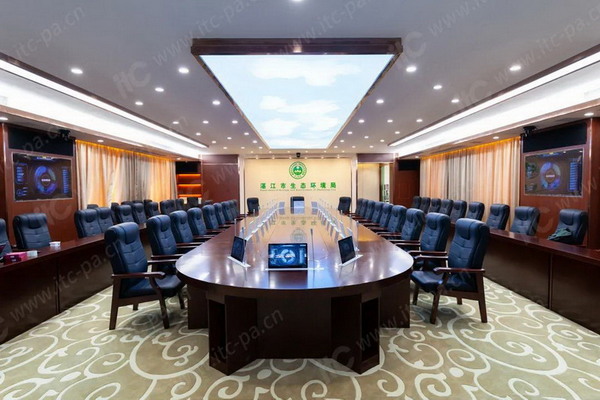 在這關鍵階段,itc為湛江市生態環境局建設的集國產麒麟無紙化會議系統、分布式綜合管理平臺,LED大屏,無線數字會議系統,云中控系統,錄播系統、專業擴聲系統等一體化音視頻解決方案,高效配合各項會議,助力全市近岸海域污染防治部署以及日常工作。
