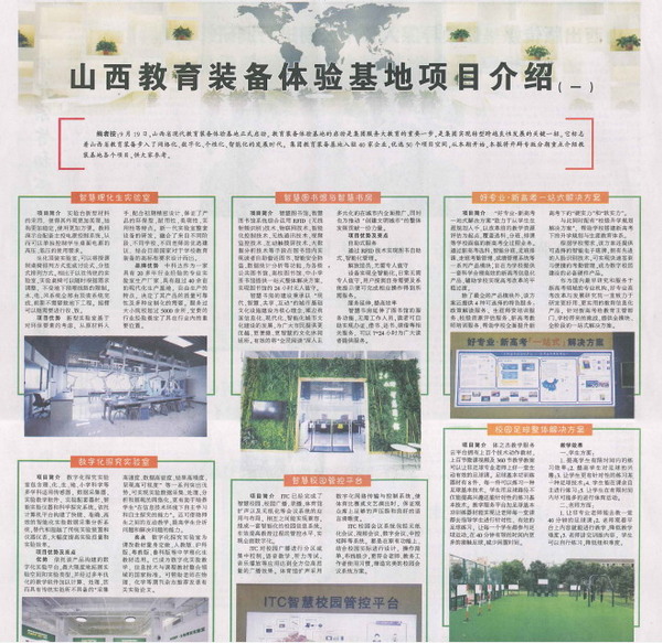 itc智慧校園成功助力山西省現(xiàn)代教育裝備體驗基地正式啟動,教育裝備體驗基地的啟動是集團(tuán)服務(wù)大教育的重要一步,是集團(tuán)實現(xiàn)轉(zhuǎn)型跨越良性發(fā)展的關(guān)鍵一招,標(biāo)志著山西省教育裝備進(jìn)入了網(wǎng)絡(luò)化、數(shù)字化、個性化、智能化的發(fā)展時代。