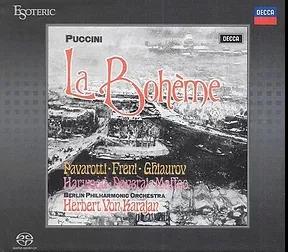 唱歌劇又是另外一種聲音。聽我最喜愛的“La Boheme”,卡拉揚,弗蘭妮和巴伐諾提的版本。同樣是女聲,弗蘭妮無需聲嘶力竭,但那聲音蘊藏的力量,卻顯而易「聽」;巴伐諾提就更不在話下了。這張是SACD,我拿其他CD版比較(插曲「冰冷小手」和「我的名字叫咪咪」,在很多詠嘆調精選碟都會出現),發覺它的音效十分出色,非常接近黑膠版。一方面證明S-3的SACD回放做得好,另一方面是這張再版也做得十分標青了。
