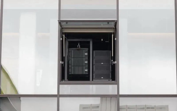 STM M28音箱設置在公園一側大廳的墻上,面向小綠坡到公園的區域。當舞臺需要使用時,PS10R2和LS600音箱系統可部署在滑動墻左右兩側位置。六個永久性杠桿裝置沿著青山兩邊部署,能夠承受所有天氣條件。