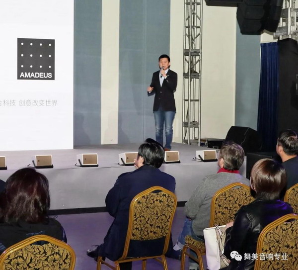 隨后分別由廣州妙音科技駱駿總經理介紹了聲音空間化技術系統Holophonix聲音全息系統,挪威精準自動追蹤系統TTA,法國High End音響品牌Amadeus (莫扎特)。駱總說法國Holophonix聲音空間化系統包含了13種不同的算法,可以滿足現場擴聲中各種不同的場景需求,例如:劇場劇院,文旅項目,新媒體藝術作品等,Holophonix內含的WFS(波場合成算法可以為劇場劇院擴聲提供新的思路和解決方案。他還講到這些系統滿足的不僅僅是基本擴聲需求,更是一套藝術創作的工具,可以為藝術家,導演,聲音設計師,燈光設計師,舞美設計師等帶來更多的創作靈感,為觀眾帶來更高的感官體驗和藝術享受,這正是妙音科技的價值觀:藝術融合科技 創意改變世界!