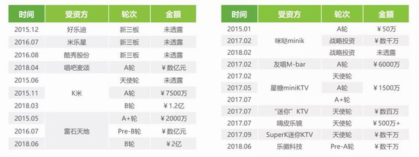 2013年至2018年,中國K歌娛樂共產生投融資21筆,融資總金額約7.3億元,體現了KTV業態的生命活力和投資吸引力。