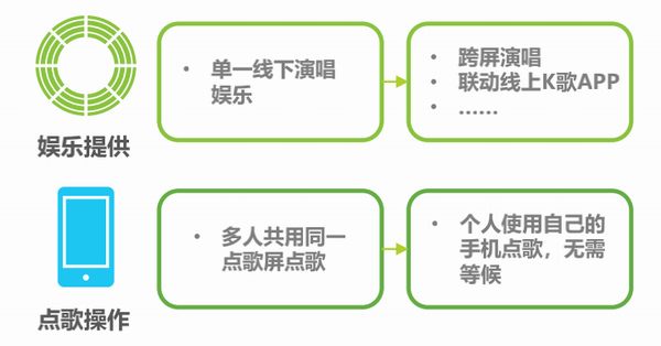 現在越來越多的KTV接入互聯網,推動K歌行業逐步走出傳統的經營模式,往轉型升級后的現代化方向發展,曲庫更新及點歌操作的過程均更加高效快捷,服務提供日趨豐富,整個娛樂過程更加便捷多彩。
